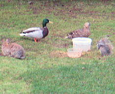hopefully you can see the 2 ducks, bunny & grey squirrel? The last pic is the chipmunk in the feeder & a black squirrel in the middle with the crow & male duck in the water.